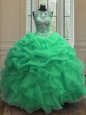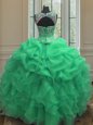 Scoop Sleeveless Organza Vestidos de Quinceanera Beading and Ruffles Lace Up
