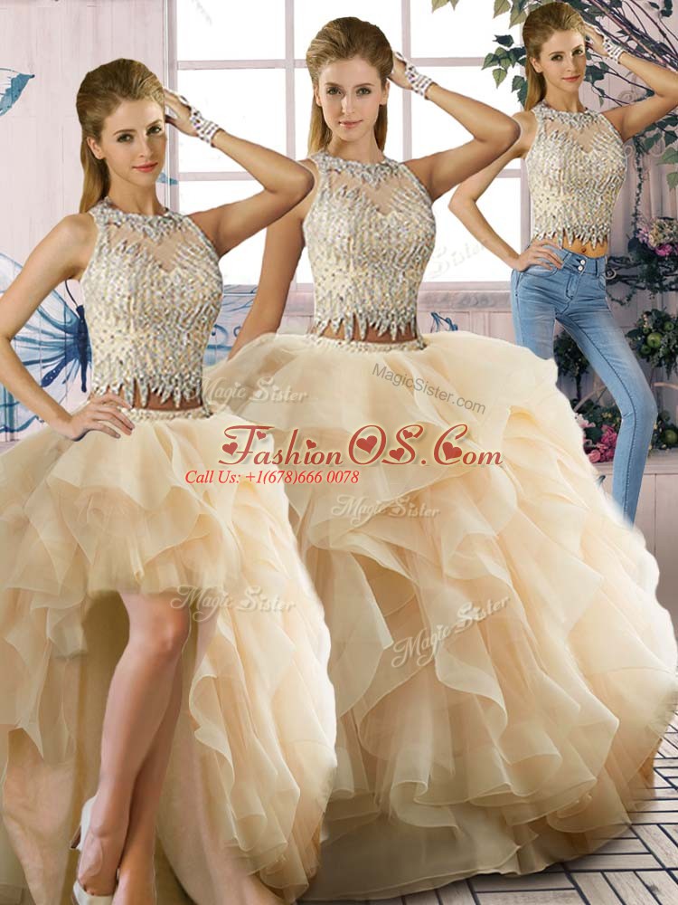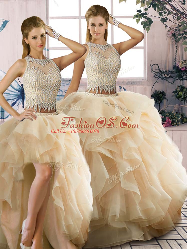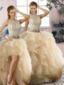 Scoop Sleeveless Organza Vestidos de Quinceanera Beading and Ruffles Zipper