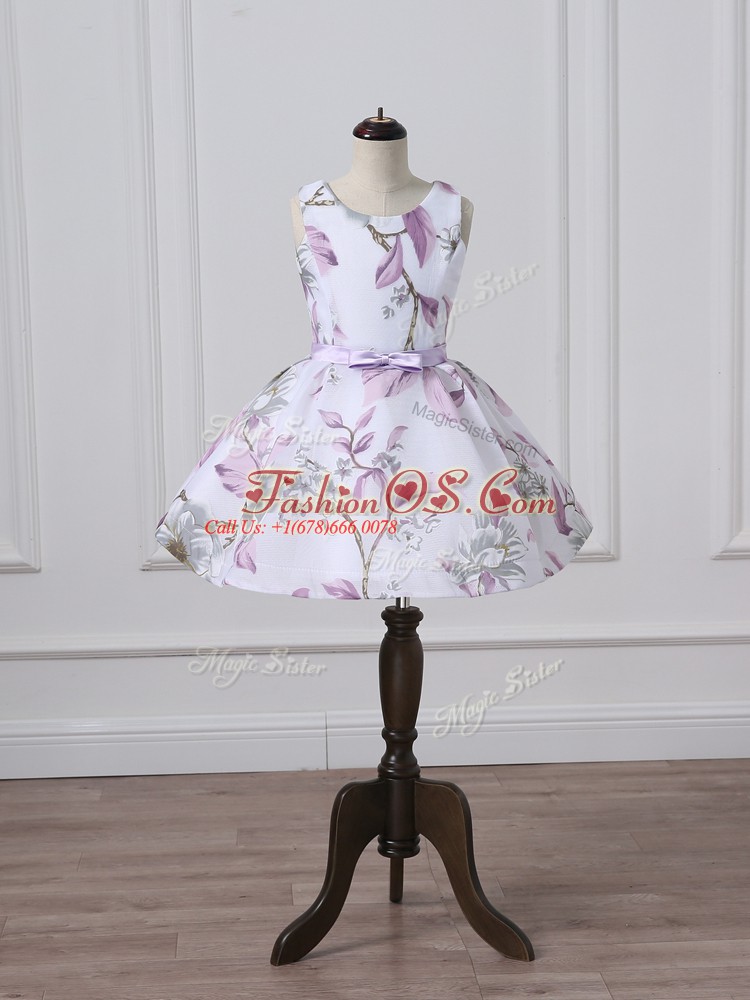 Scoop Sleeveless Printed Kids Pageant Dress Pattern Lace Up