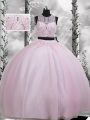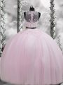 Scoop Sleeveless Quinceanera Dress Floor Length Beading and Appliques Baby Pink Tulle