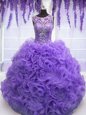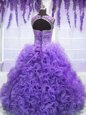 Scoop Sleeveless Quinceanera Gowns Floor Length Beading and Ruffles Lavender Organza