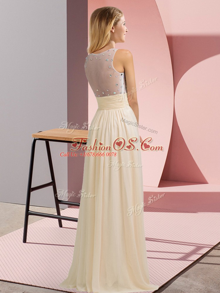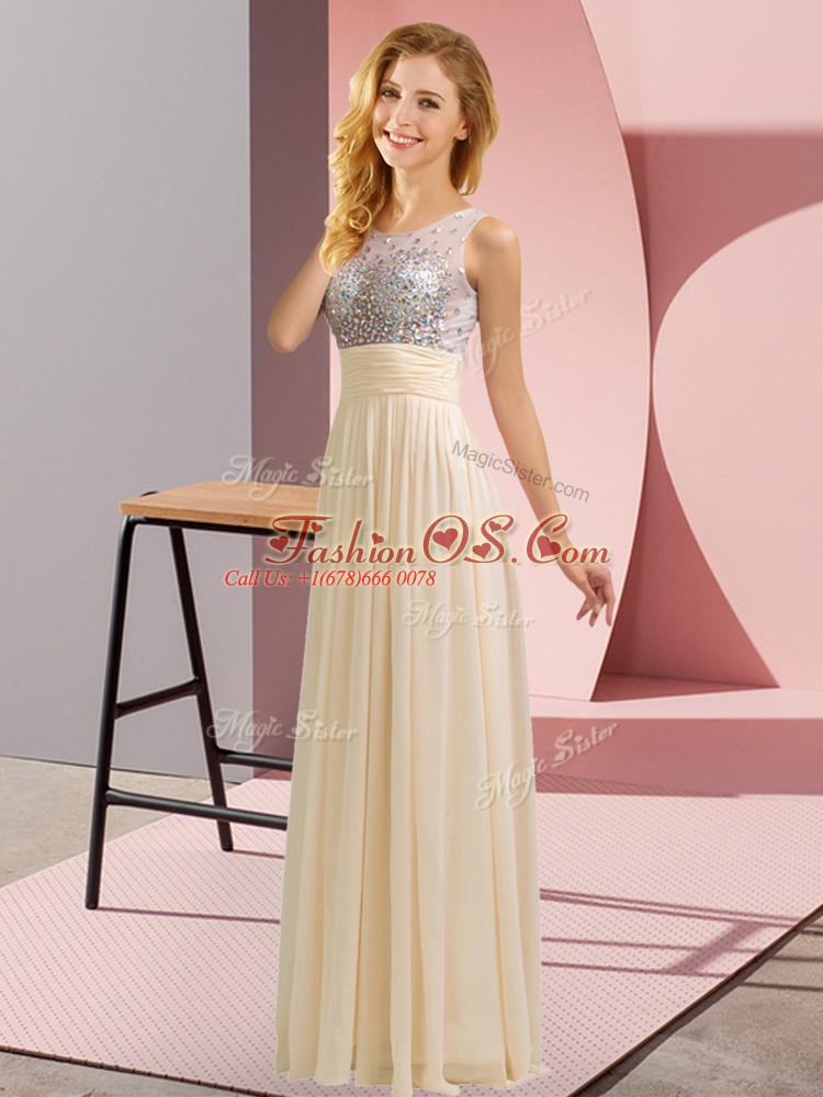 Scoop Sleeveless Side Zipper Dama Dress for Quinceanera Champagne Chiffon