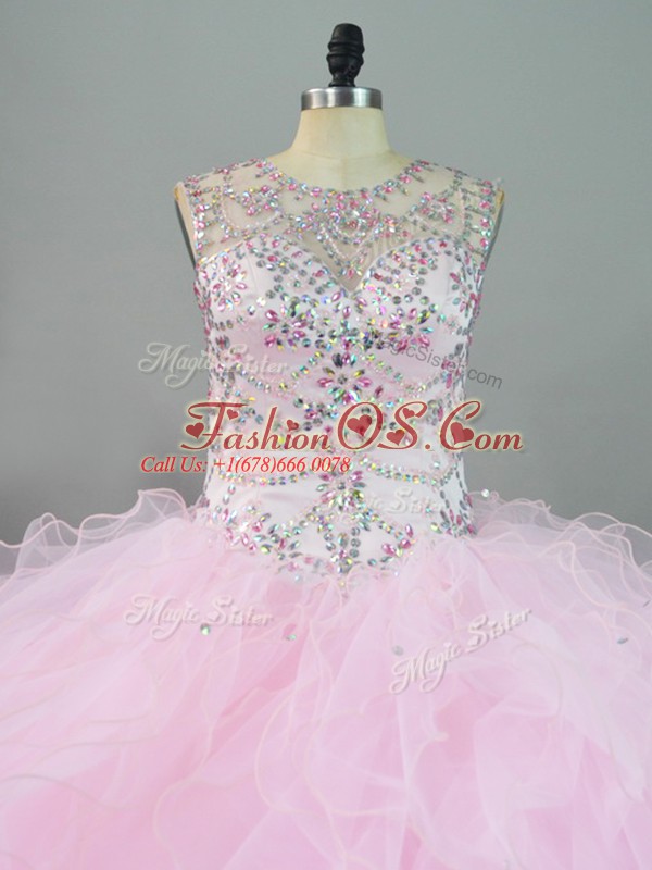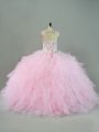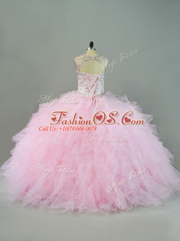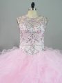 Scoop Sleeveless Tulle 15 Quinceanera Dress Beading and Ruffles Lace Up