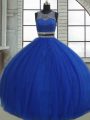 Scoop Sleeveless Tulle 15th Birthday Dress Beading and Sequins Clasp Handle