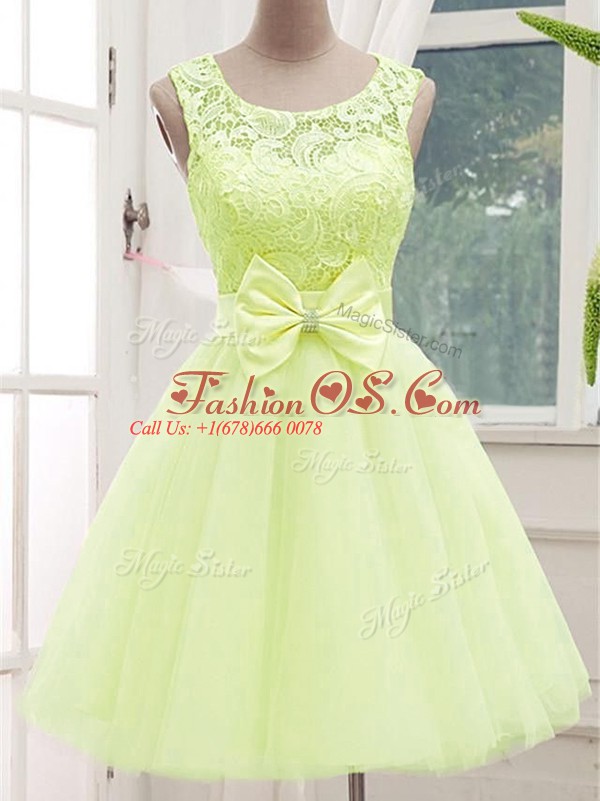 Scoop Sleeveless Tulle Bridesmaid Dresses Lace and Bowknot Lace Up