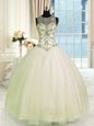 Home >  Quinceanera Dresses >  15 Quinceanera Dresses > Scoop Sleeveless Tulle Floor Length Lace Up Ball Gown Prom Dress in Champagne for with Beading