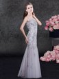 Home >  Special Occasion Dresses >  Mother of the Bride Dresses > Scoop Sleeveless Tulle Floor Length Zipper Mother Of The Bride Dress in Grey for with Lace and Appliques