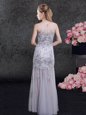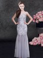 Scoop Sleeveless Tulle Floor Length Zipper Mother Of The Bride Dress in Grey for with Lace and Appliques