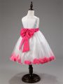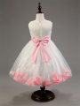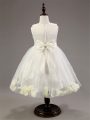 Scoop Sleeveless Tulle Kids Formal Wear Appliques and Hand Made Flower Zipper