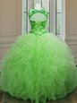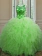 Scoop Sleeveless Tulle Lace Up Quinceanera Gown for Military Ball and Sweet 16 and Quinceanera