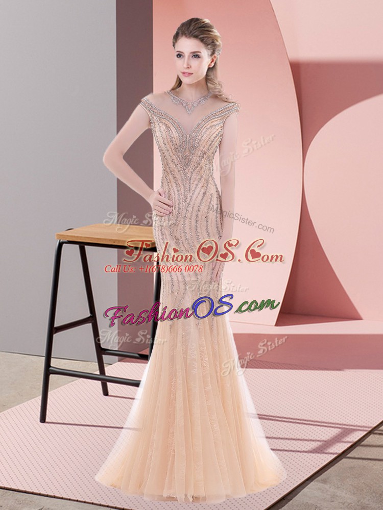 Home >  Prom Dresses >  Affordable Prom Dresses > Scoop Sleeveless Tulle Prom Gown Beading Sweep Train Zipper