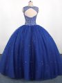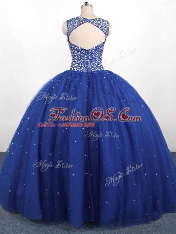 Scoop Sleeveless Tulle Quinceanera Gown Beading Zipper