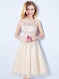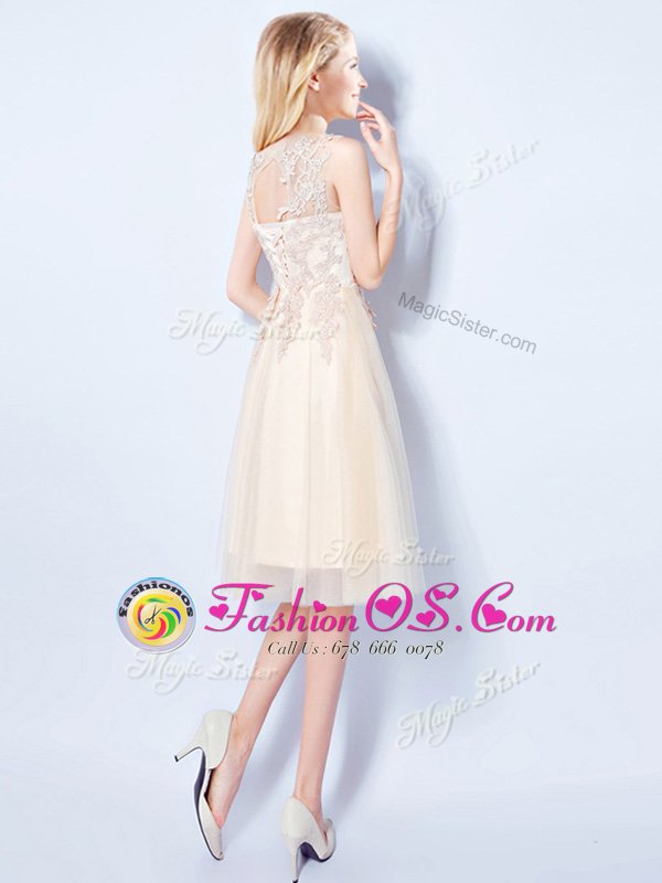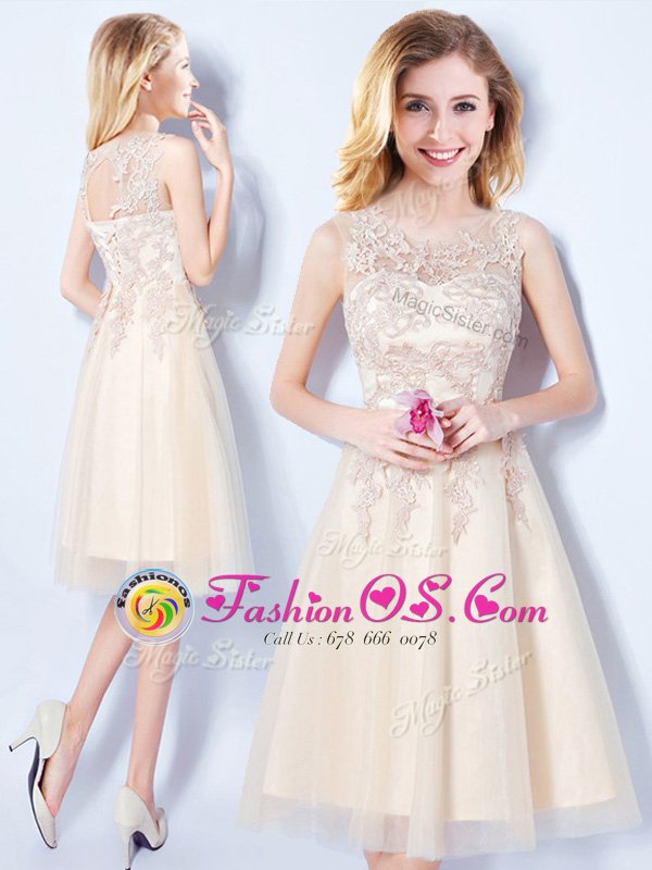 Scoop Sleeveless Tulle Wedding Party Dress Appliques Lace Up