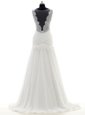 Scoop Sleeveless With Train Lace Side Zipper Wedding Dress with White Brush Train