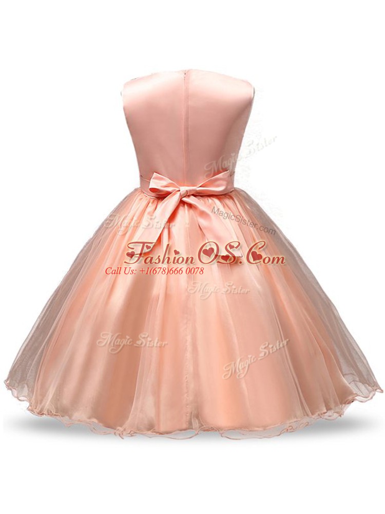 Home >  Special Occasion Dresses >  New Style Little Girl Pageant Dresses > Scoop Sleeveless Zipper Girls Pageant Dresses Peach Organza