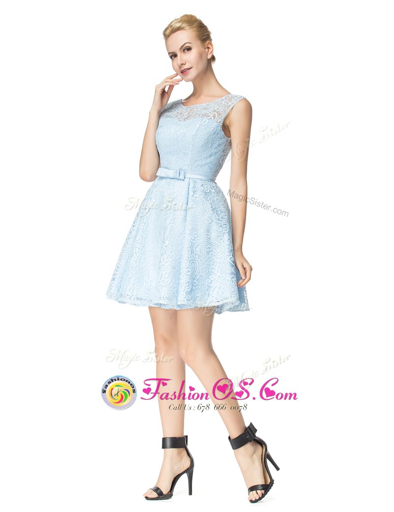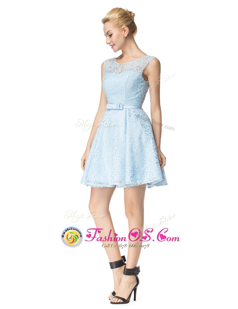 Home >  Prom Dresses >  Perfect Prom Dresses > Scoop Sleeveless Zipper Mini Length Lace and Belt