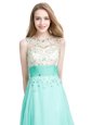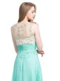 Scoop Sleeveless Zipper Prom Dress Turquoise Chiffon