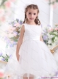 Home >  Special Occasion Dresses >  Little Girl Pageant Dresses > Scoop Tea Length White 2015 Little Girl Pageant Dress with Sash