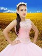 Home >  Quinceanera Dresses >  15 Quinceanera Dresses > Scoop Tulle Sleeveless Floor Length Quince Ball Gowns and Beading and Lace and Embroidery