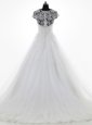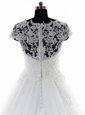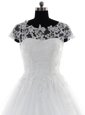 Scoop White Clasp Handle Wedding Gown Lace and Appliques Short Sleeves With Brush Train