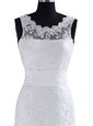 Home >  Wedding Dresses >  Beautiful Wedding Dresses > Scoop White Column/Sheath Lace Scalloped Sleeveless Lace and Appliques and Bowknot With Train Backless Wedding Dresses Brush Train