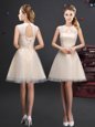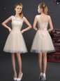 Scoop White Sleeveless Tulle Lace Up Quinceanera Dama Dress for Prom and Party and Wedding Party
