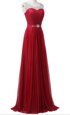Home >  Prom Dresses >  Perfect Prom Dresses > Scoop Wine Red Sleeveless Chiffon Brush Train Zipper Evening Dress for Prom and Party