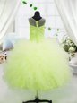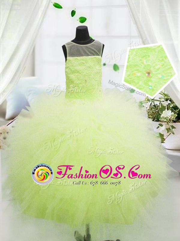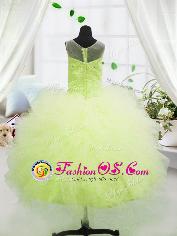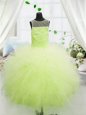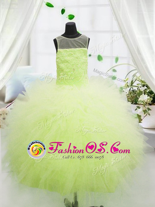 Home >  Special Occasion Dresses >  Mini Quinceanera Dresses > Scoop Yellow Green Tulle Zipper Girls Pageant Dresses Sleeveless Floor Length Beading and Appliques