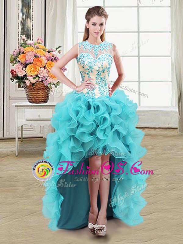 Home >  Prom Dresses >  Perfect Prom Dresses > See Through Aqua Blue Zipper Scoop Beading Evening Dress Organza Sleeveless