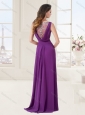 See Through Bateau Eggplant Brush Train Purple Evening Dress with Appliques