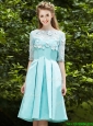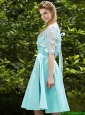 See Through Bateau Half Sleeves Appliques Prom Dresses  in Apple