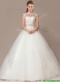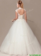See Through Beaded Decorate Waist High Neck Shade Back Wedding Dresses with Appliques