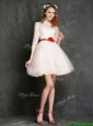 See Through High Neck Half Sleeves Short Bridesmaid Dresses with Belt