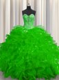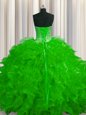 See Through Organza Sweetheart Sleeveless Lace Up Beading and Ruffles Sweet 16 Dresses in