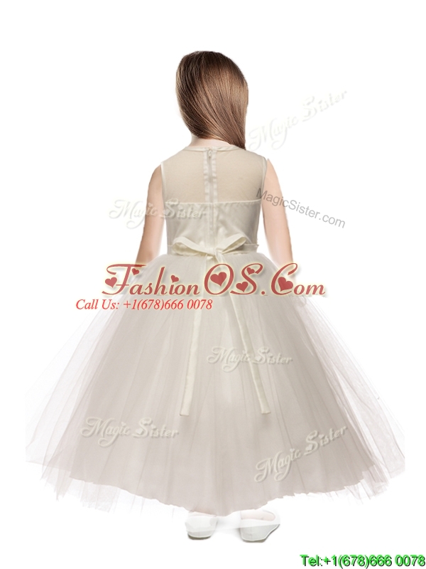 Home >  Special Occasion Dresses >  New Style Little Girl Pageant Dresses > See Through Scoop Appliques Little Girl Pageant Dress in Champagne