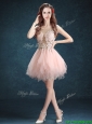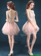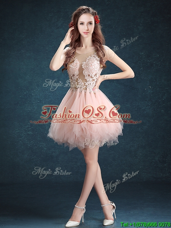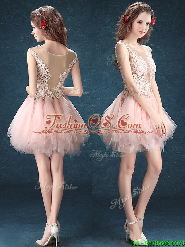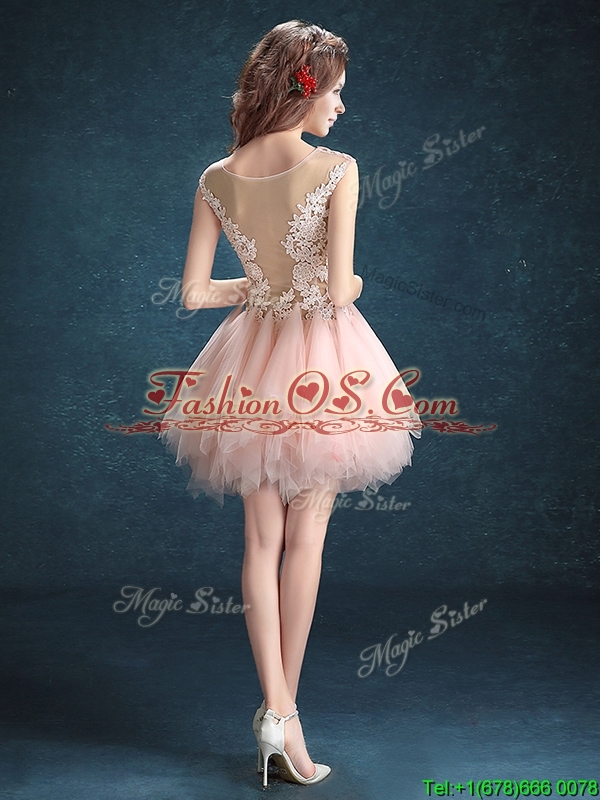 Home >  Special Occasion Dresses >  Cheap Dama Dresses > See Through Scoop Baby Pink Dama Dress with Appliques and Ruffles