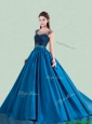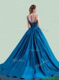 See Through Scoop Brush Train Quinceanera Dress with Cap Sleeves