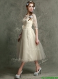 See Through Scoop Half Sleeves Mother of the Bride Dresses  with Hand Made Flowers and Lace