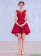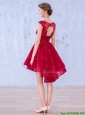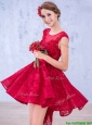 See Through Scoop High Low Wine Red Prom Dresses with Lace