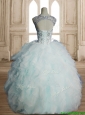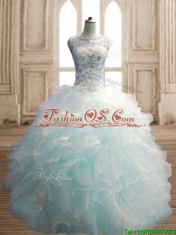 See Through Scoop Light Blue Quinceanera Dress with Beading and Ruffles