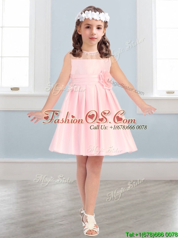 Home >  Special Occasion Dresses >  New Style Little Girl Pageant Dresses > See Through Scoop Little Girl Pageant Dress with Hand Made Flowers