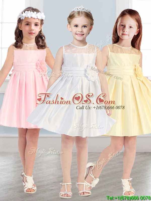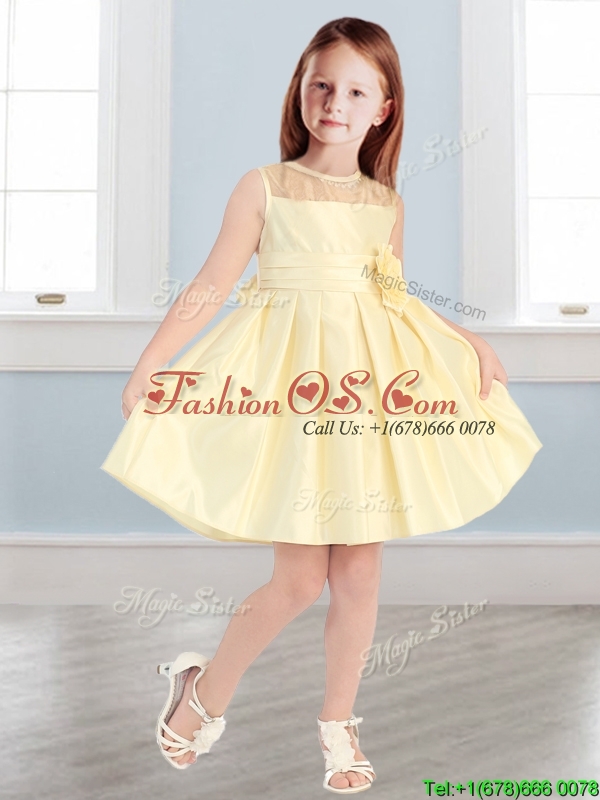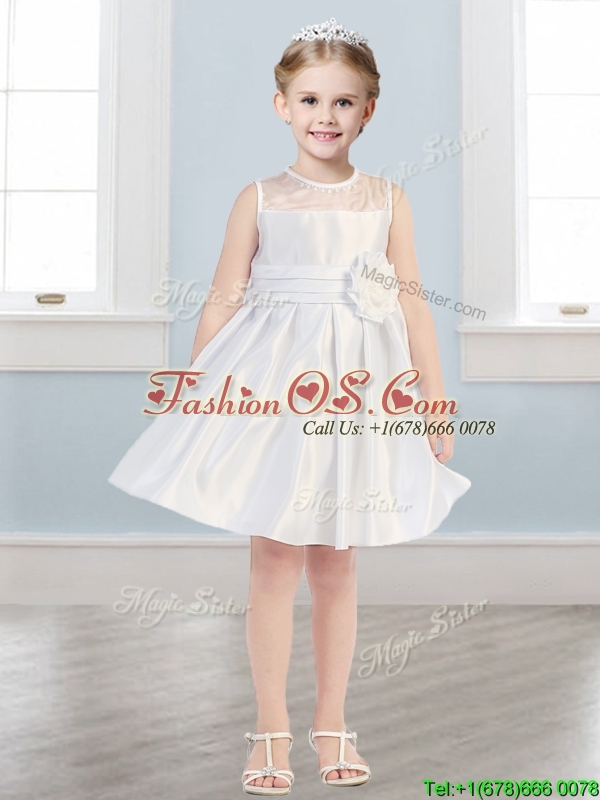 See Through Scoop Little Girl Pageant Dress with Hand Made Flowers