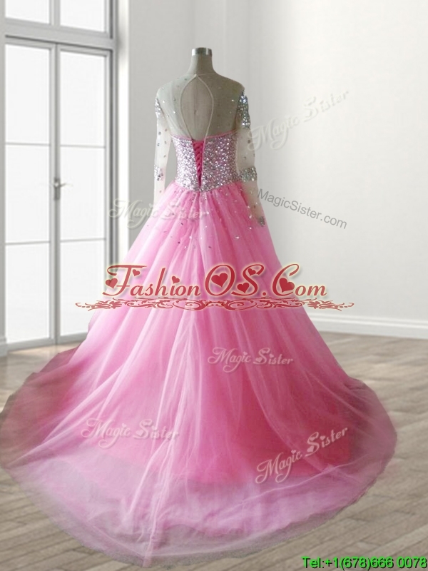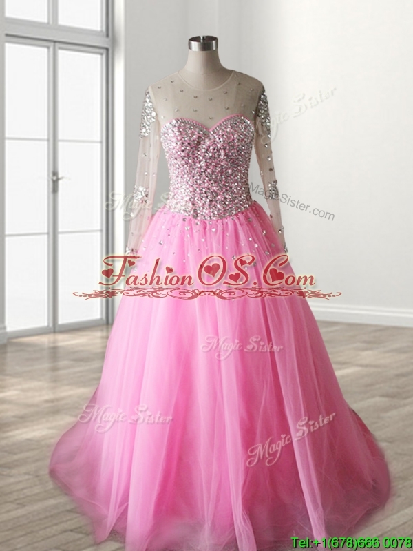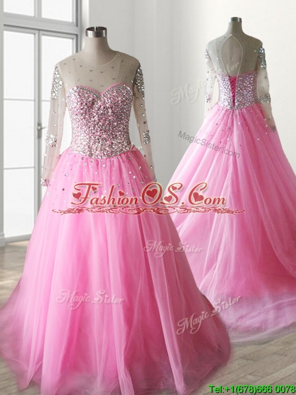 See Through Scoop Long Sleeves Quinceanera Dress with Beading