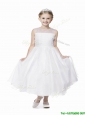 See Through Scoop Organza White Flower Girl Dress in Tea Length