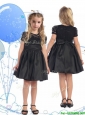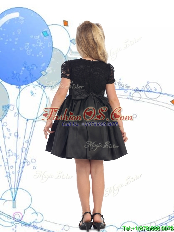 Home >  Special Occasion Dresses >  New Style Little Girl Pageant Dresses > See Through Scoop Short Sleeves Lace and Belt Little Girl Pageant Dress in Black