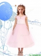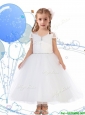 See Through Square Cap Sleeves Little Girl Pageant Dress with Beading