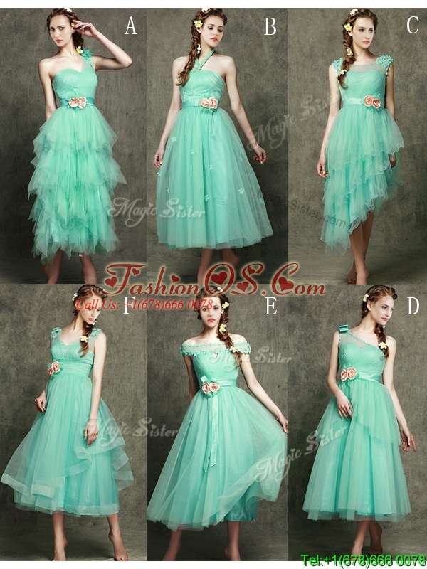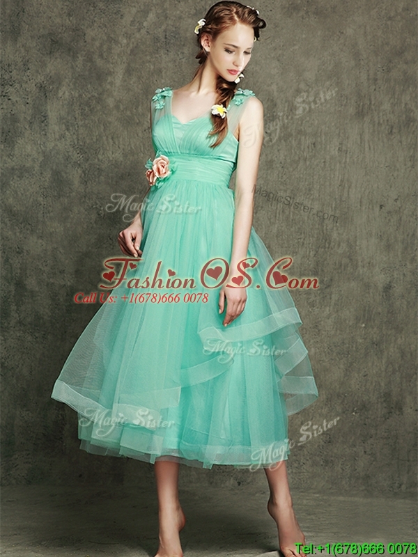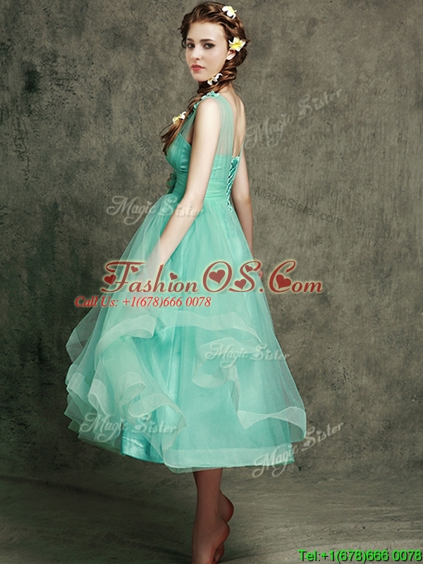 See Through Straps Bridesmaid Dress with Appliques and Hand Made Flowers