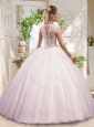 See Through White Ball Gowns High Neck Sequins Beaded Quinceanera Dress with Zipper Up