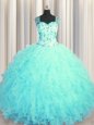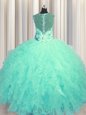 See Through Zipper Up Sleeveless Beading and Ruffles Zipper Vestidos de Quinceanera