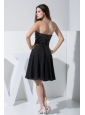 Sequin and Hand Made Flower Decorate Bodice Chiffon Black Knee-length Prom Dress